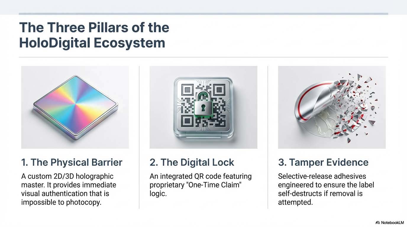 ​The Physical Barrier: A custom 2D/3D holographic master that cannot be photocopied or scanned.