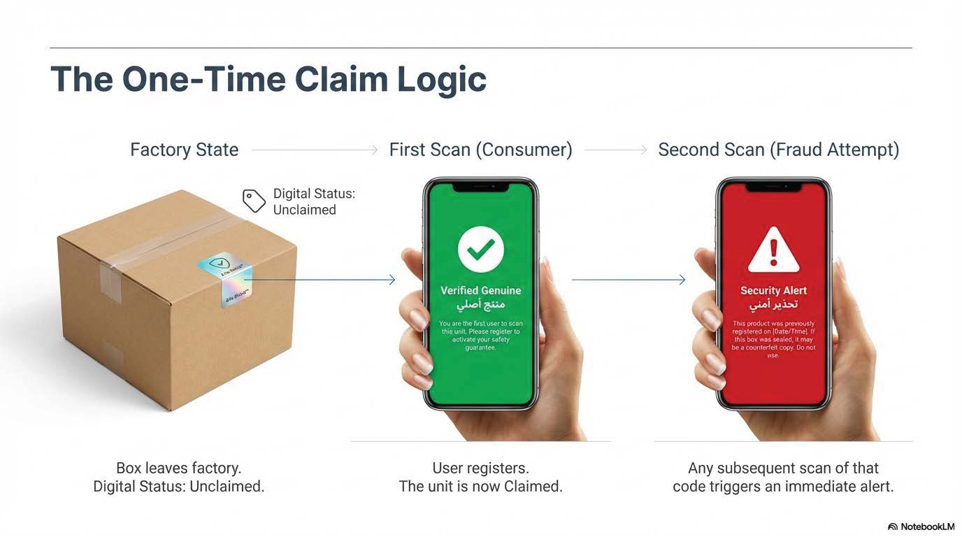 ​The Lockdown: Once claimed, the code is deactivated. Any counterfeit “copy” of that code will trigger a Red Fraud Alert on the next user’s phone.
